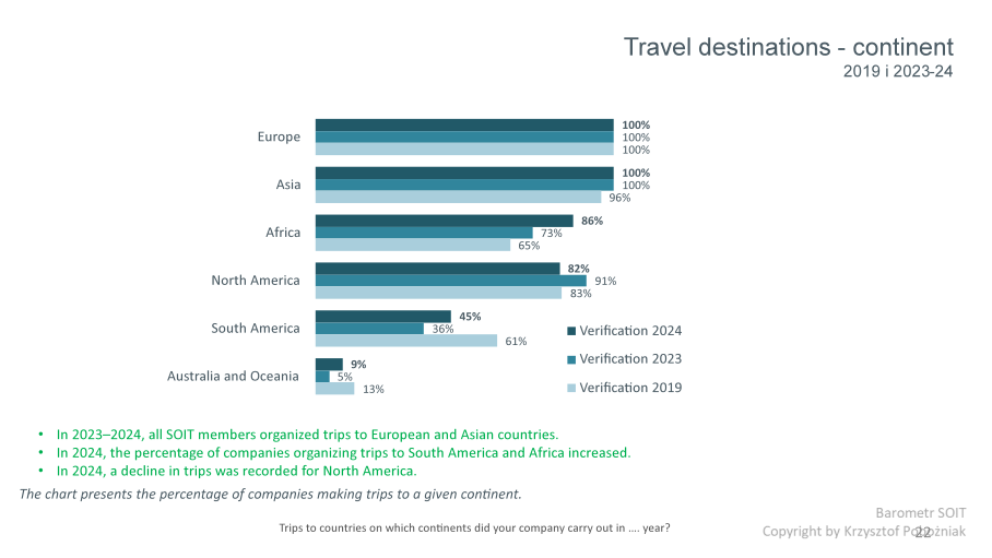 • In 2024, the percentage of companies organizing trips to South America and Africa increased.