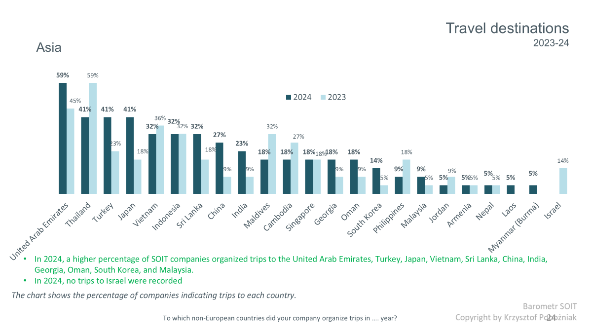 • In 2024, a higher percentage of SOIT companies organized trips to the UAE, Turkey, Japan, Vietnam, Sri Lanka, China, India, Georgia, Oman, South Korea, and Malaysia.