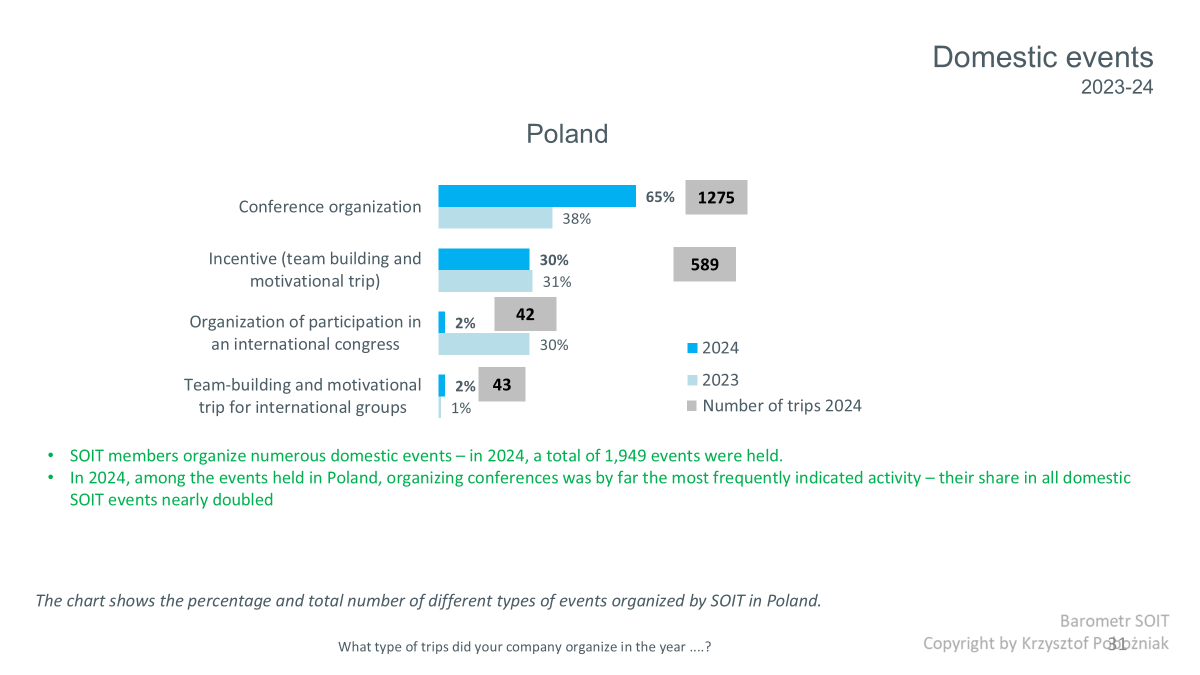 • In 2024, the estimated market value for incentive travel increased by almost 100 million PLN compared to 2023.