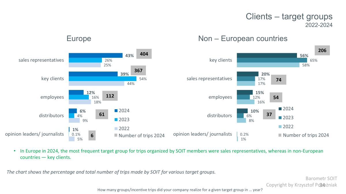 • In Europe, the target group for trips organized by SOIT members in 2024 were primarily sales representatives, while in non-European countries, the focus was on key clients.